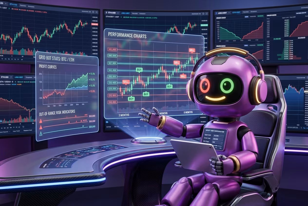 Согласно РБК Крипто, прогнозы рынка до конца 2026 года указывают на дальнейшую интеграцию ИИ в торговые алгоритмы. Роль адаптивных систем усилится. Для трейдера это означает одно: ручная настройка уходит в прошлое. Ты задаёшь начальный капитал (от $100), выбираешь пару, а бот сам подстраивает параметры под текущую волатильность. Не магия. Стандарт 2026 года, где автоматизация торговли строится на данных, а не на интуиции.
