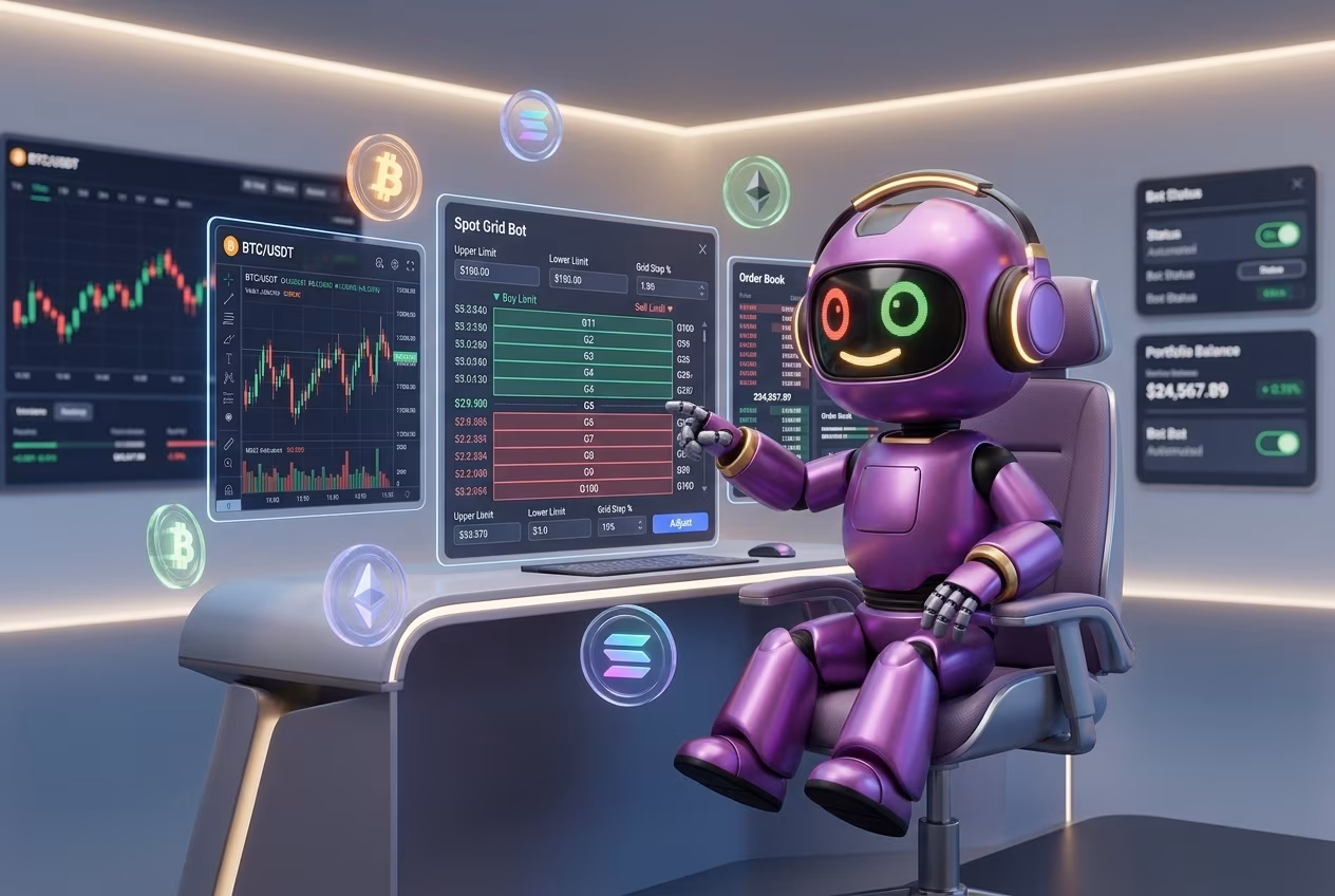 Спотовый грид бот в криптовалюте — это программный алгоритм, который автоматически покупает активы дешевле и продает дороже внутри заданного ценового диапазона без твоего прямого участия. Забудь про ручное выставление ордеров и ночные бдения у монитора: встроенные биржевые инструменты позволяют запустить системную торговлю с депозитом от 100$, полностью исключая эмоциональные ошибки и страх входа в сделку.